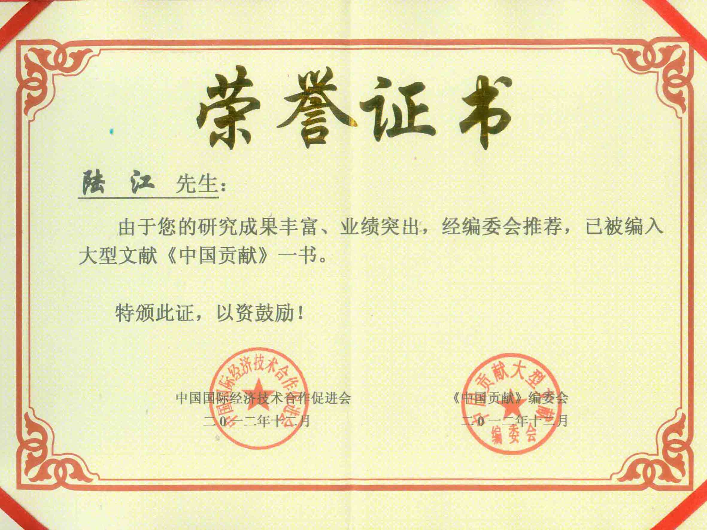 陸江的杰出貢獻(xiàn)被人民日?qǐng)?bào)社評(píng)為先進(jìn)個(gè)人